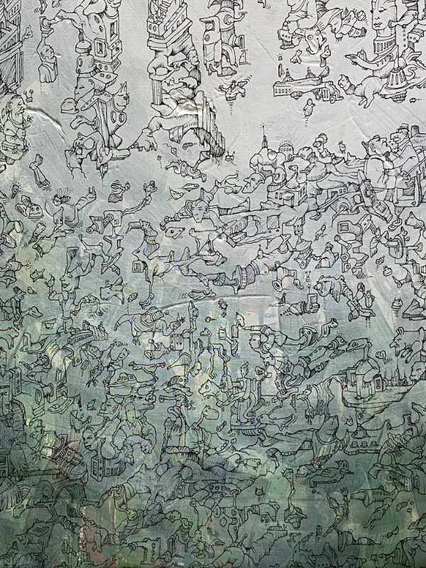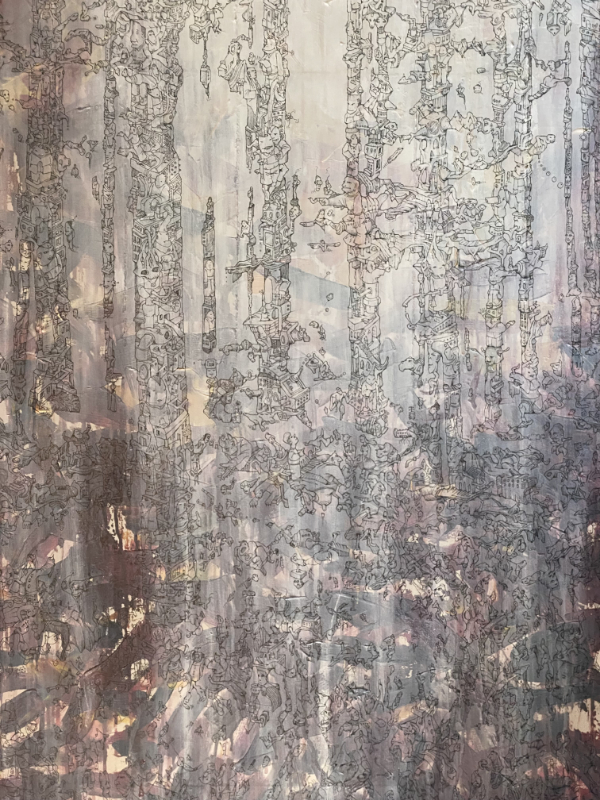 Ein künstlerisches Spiel, zwei meiner Wege als Hybrid, und man kann immer nur ein Bild betrachten, entweder man sieht den Wald oder die Figurenwelt. Wir sind als Menschen immer gleichzeitig der Mittelpunkt unseres Universums oder ein Teil eines unvorstellbar großen Ganzen, das All-Eins-Sein, beides gleichzeitig wahrzunehmen ist nahezu unmöglich.